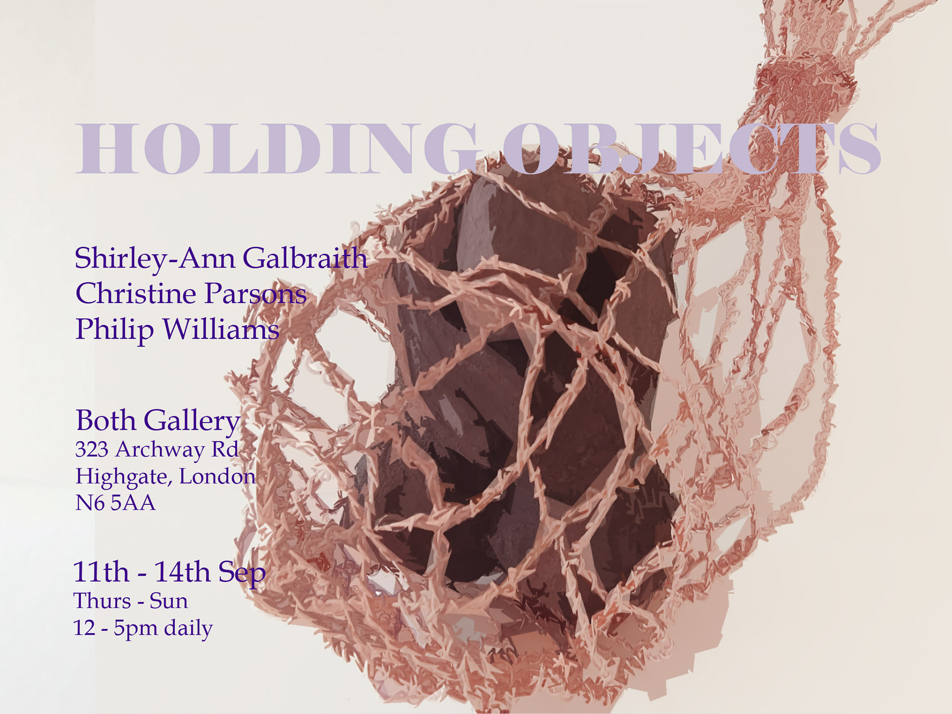 Holding Objects presents work of 3 artists, Shirley-Ann Galbraith, Christine Parsons, and Philip Williams that explore the theme of the object. The exhibition includes pieces executed in a variety of media, including drawing, painting, print, ceramics, textiles, and sculptural work.