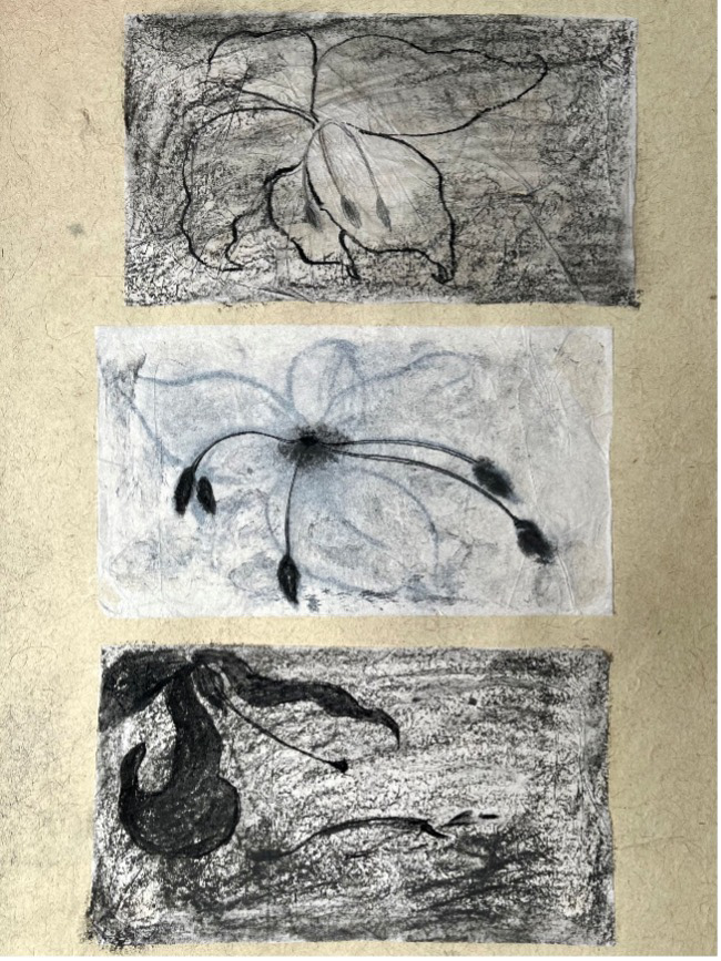 Charcoal, butter paper, graphite on Nepali paper, 18 x 25 inches, 2026